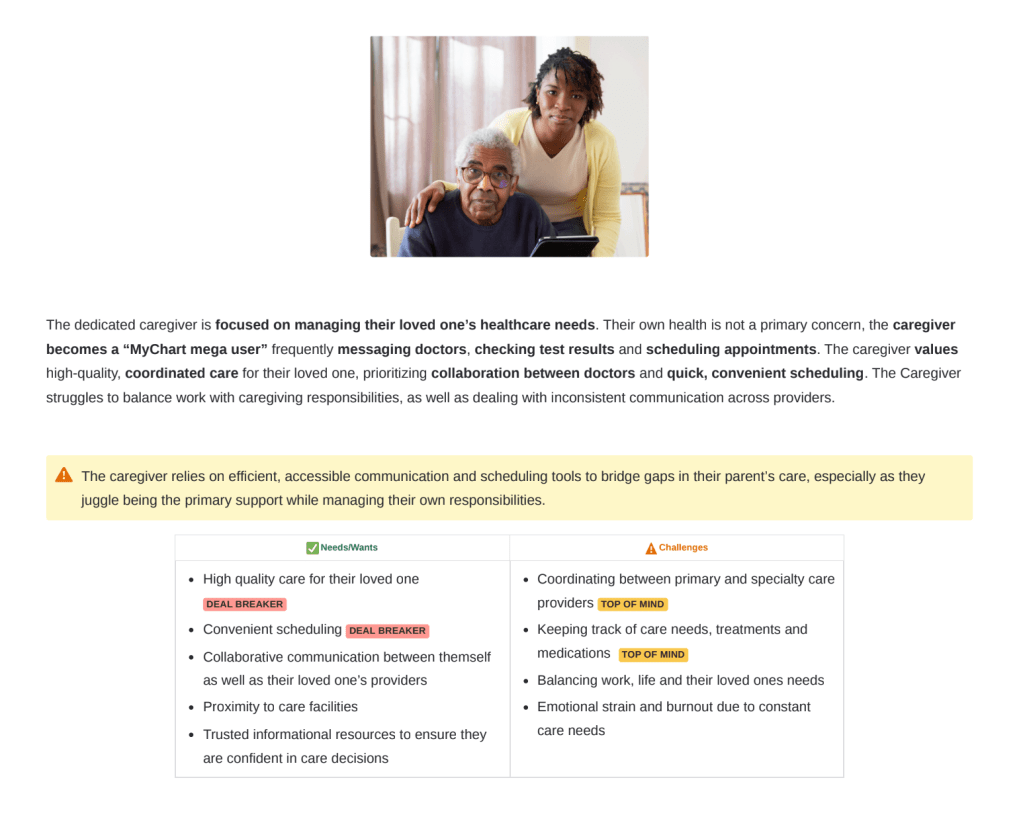 My approach to understanding users goes well beyond creating standard personas—it’s an ongoing process that grows with your product. I start by talking to your team about who they think your users are, then conduct formal research to test those assumptions, and after launch I analyze how people actually behave with your product. Your understanding of users should deepen as your product matures. This continuous learning approach has been especially important in healthcare, where strict regulations and clinical workflows create specific challenges that you can’t predict upfront.